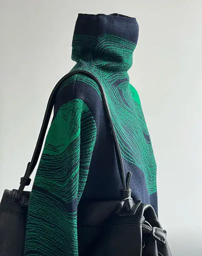 Abstract Green Patten Knit, Loose Fit Winter Pullover